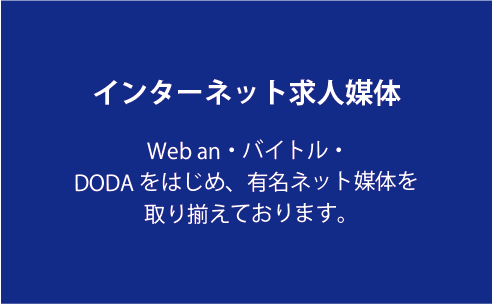 さまざまなクライアント様の人材ニーズに対応した商品(求人媒体、フリーペーパー、web媒体等)を多種取り揃え、求人広告による採用サポートを提案しております。採用の現状をヒアリングし問題や課題のお打ち合わせを実施し、最新の求人動向データやマーケティングに基づき、求人提案をさせて頂いております。総合広告代理店だからこそできる戦術で「人集め」のサポートをいたします。
