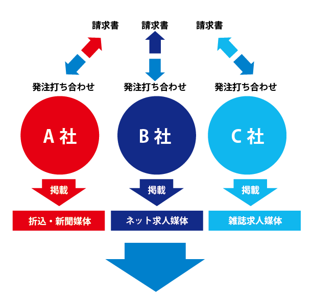 求人の掲載媒体ごとに業者が違うと、