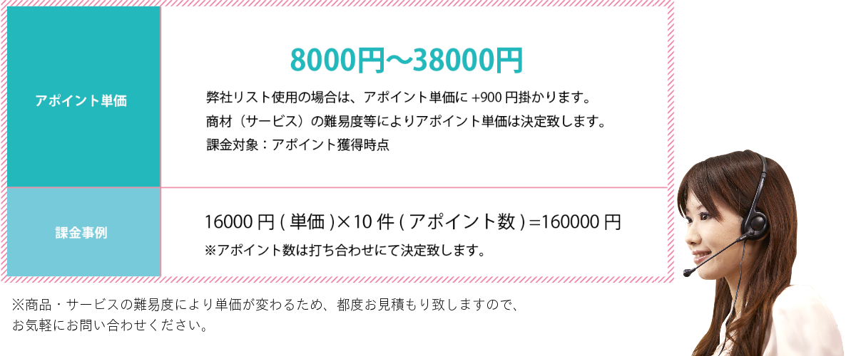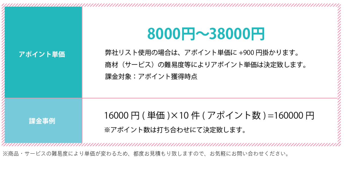 アポイント1件に対する成功報酬型なので、月額固定費用は一切必要ありません。